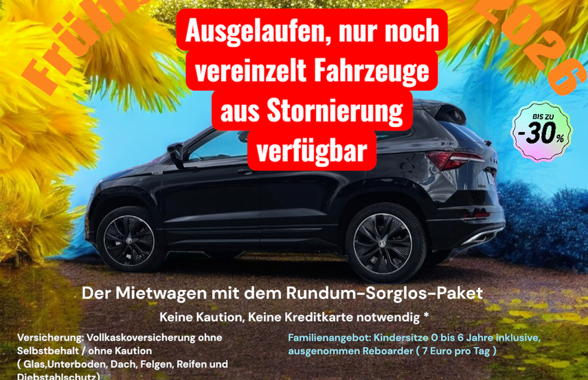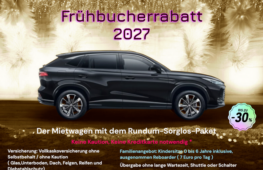 Czy potrzebujesz samochodu na wakacje? Nie chcesz niekończących się kolejek przy kasie, pytań, dyskusji o dodatkowym ubezpieczeniu lub wysokich kaucjach? Zatem trafiłeś we właściwe miejsce. Zrobimy wszystko za Ciebie i przygotujemy wypożyczony samochód zaraz po przyjeździe, abyś mógł spokojnie rozpocząć wakacje.